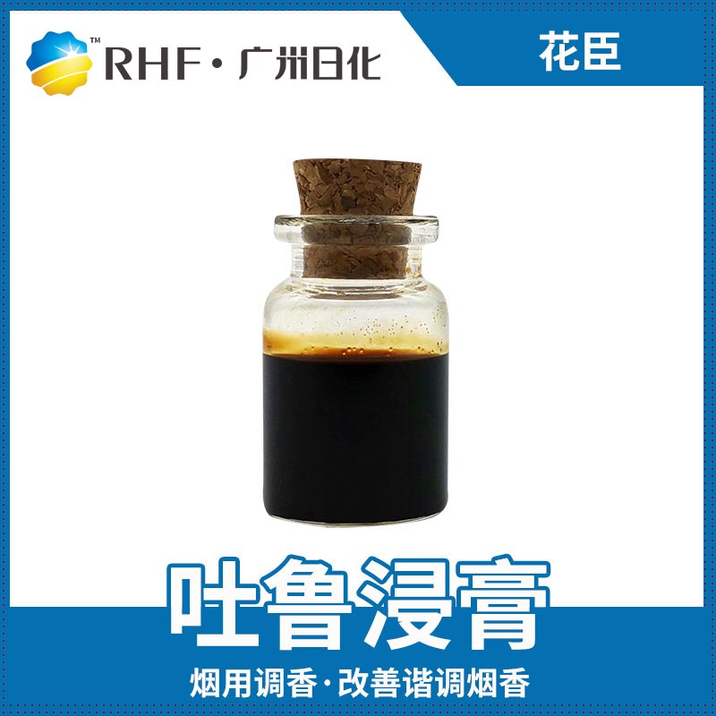 3.吐鲁浸膏能与烟香谐调,改善烟草的香味,增添烟气和清甜花香韵味,掩盖刺激性和不良气息,可用于各种类型的加料香精、表香香精中